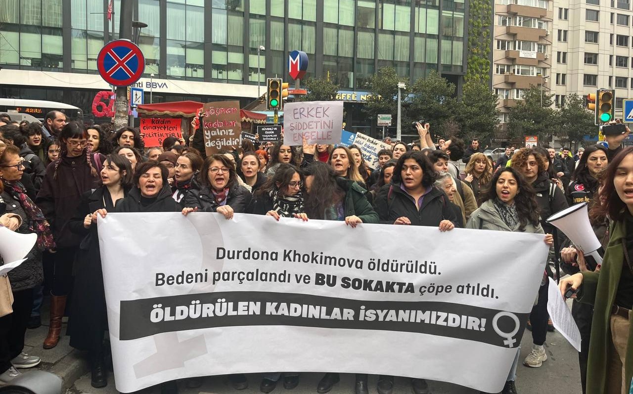 24 Ocak Cumartesi günü Şişli’de bir çöp konteynerinde Özbekistanlı bir göçmen kadın olan Durdona Khokimova’nın parçalanmış bedeni bulundu. Durdona, Dılshod Akhrol Uglı Turdımurotov ile ona yardım eden Gofurjon Akmalkhonovıch Kamalkhodaev adlı erkekler tarafından katledildi. Kadın Cinayetlerine Karşı Feministler ve çeşitli kadın örgütlerinin çağrısıyla 25 Ocak’ta yapılan toplanmada kadınlar ve lgbti+lar, Osmanbey’den Durdona’nın parçalanmış bedeninin bulunduğu Kuyulubağ Sokak’a yürüdü.